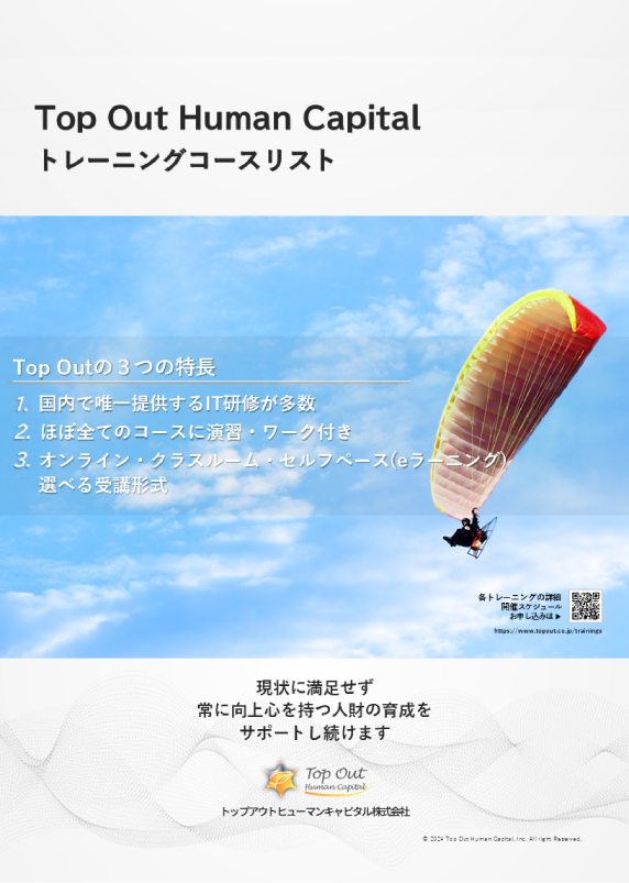 Top Out Human Capitalが扱っている全ての研修を一覧でご紹介しています。